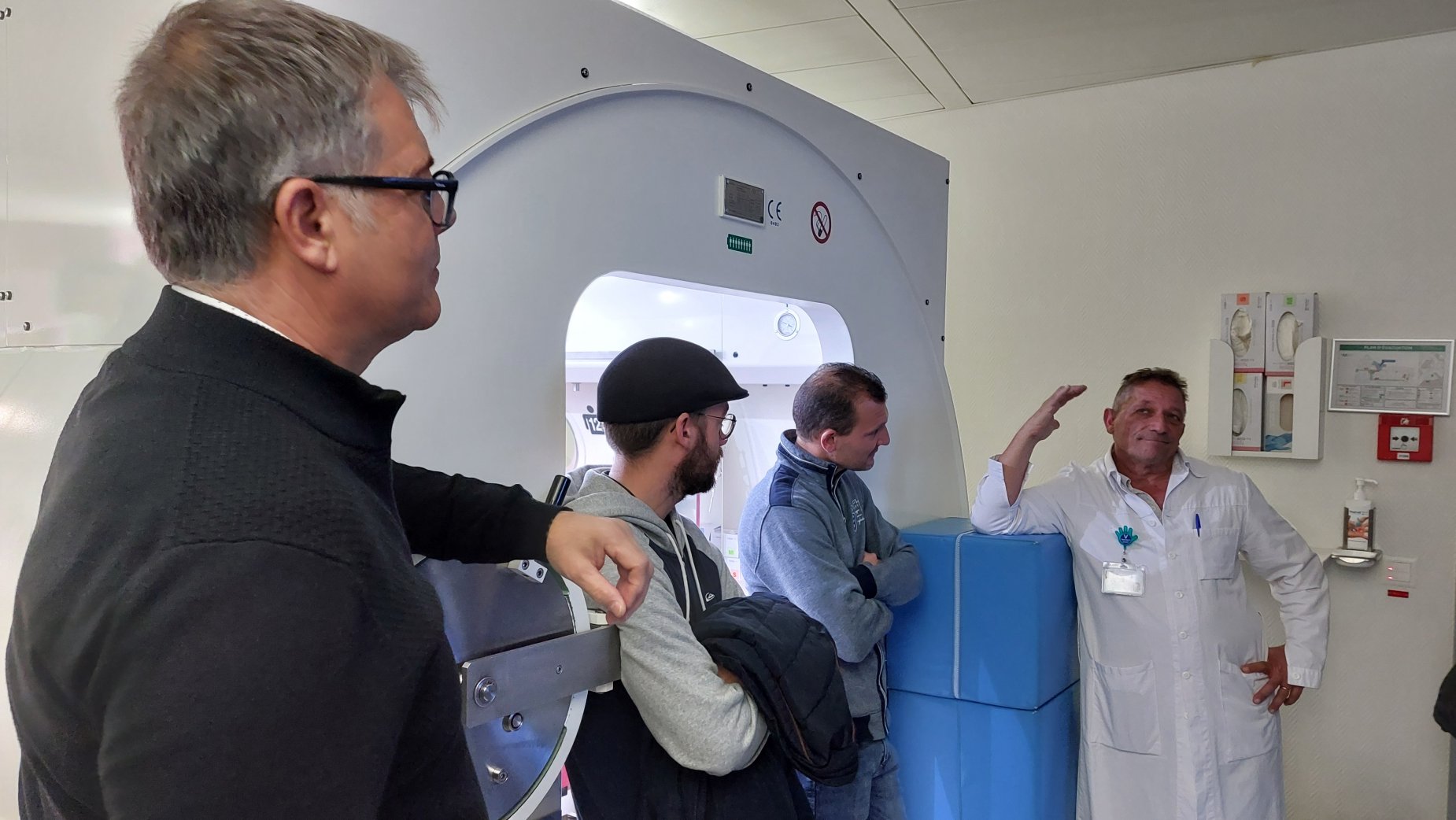 Une quinzaine de membres d'EXOCET LEMAN a eu l’occasion de visiter le caisson hyperbare des Hôpitaux Universitaires de Genève (HUG). Cette visite aussi instructive que captivante, a permis aux participants de mieux comprendre les aspects techniques et médicaux des interventions liées à la plongée.